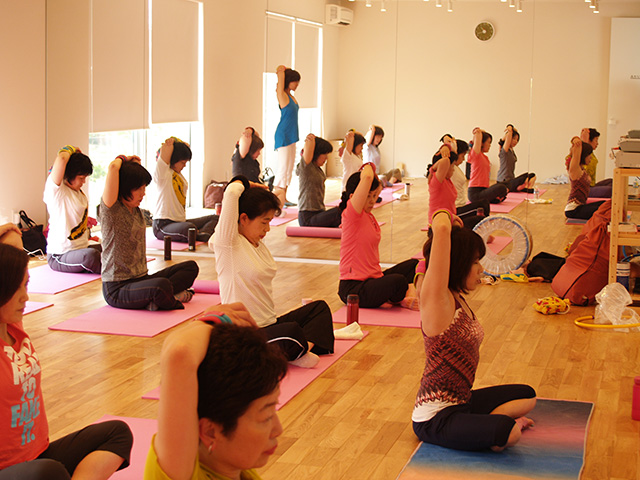 ヨガ、ストレッチ、バレエ、フラダンスなどのエクササイズの他、