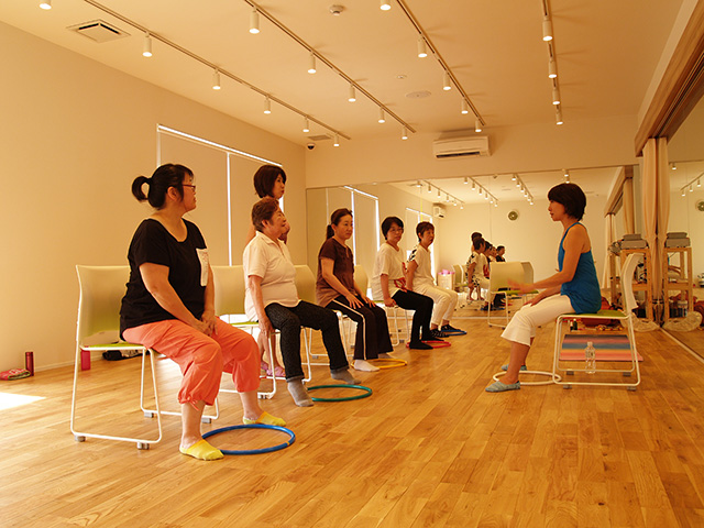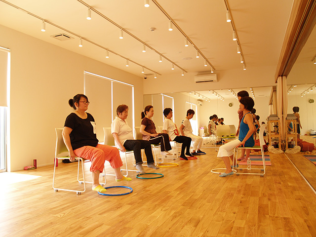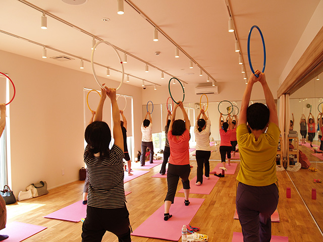 【ハッピーストレッチとは】優しい動きのストレッチと筋トレのクラス。直径40cmのリングを持ちながらのエクササイズで、椅子に座ってのストレッチや筋トレなど、バラエティに富んだ内容です。身体を動かすことが苦手な方、また身体に不調を抱えている方も、無理なく自分のペースでストレッチをして頂けます。 |